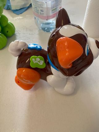 Simpaticissimo cagnolino giocattolo per bambini, color marrone e bianco con dettagli arancioni. - Giocattolo educativo con numeri. - Perfetto per intrattenere i più piccoli. - In ottime condizioni.
