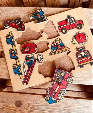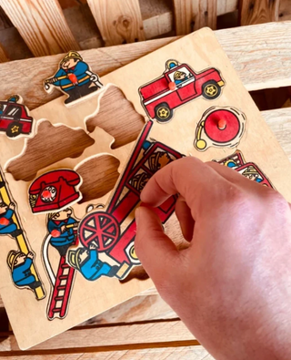 Gioco didattico in legno a tema pompieri e vigili del fuoco, pensato per stimolare apprendimento, logica e coordinazione nei bambini e nelle bambine. Il gioco è basato sull’inserimento delle formine, aiutando a riconoscere forme, colori e sviluppare le capacità cognitive in modo semplice e divertente. Realizzato interamente in legno, questo gioco educativo è ideale per la prima infanzia, per attività didattiche o come gioco da tavolo educativo. Il tema dei vigili del fuoco rende il gioco ancora più coinvolgente, favorendo anche il gioco di ruolo. Prodotto made in Belgium, è perfetto per chi cerca giochi in legno didattici, giochi ed