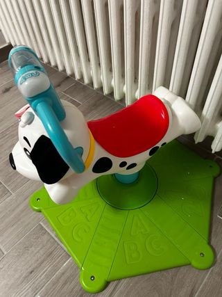 Divertente cagnolino Fisher-Price che salta e gira. Ideale per i più piccoli. - Base verde esagonale con lettere e numeri. - Maniglie azzurre per afferrare. - Dettagli colorati e simpatici.