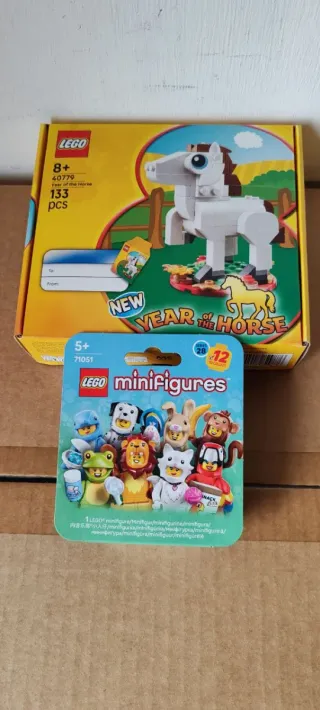 Set LEGO composto da una confezione di Minifigures Serie 28 e il set Anno del Cavallo. - Minifigures Serie 28 (71051) con 1 personaggio a sorpresa (scansionando il codice Contiene Dolphin costume) - Set speciale limited edition Anno del Cavallo (40779) con 133 pezzi - Entrambi Nuovi scatole sigillate Set LEGO compuesto por un pack de minifiguras de la serie 28 y el set del Año del Caballo. - Minifiguras de la serie 28 (71051) con un personaje sorpresa (escanea el código. Incluye disfraz de delfín). - Set de edición especial limitada del Año del Caballo (40779) con 133 piezas - Ambos nuevos, con cajas selladas.