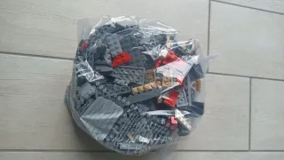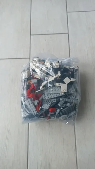 Sacchetto contenente pezzi Lego misti. - Pezzi di vari colori tra cui grigio, rosso e bianco. - Ideali per espandere la collezione o per creare nuove costruzioni.