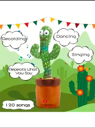Peluche a forma di cactus che balla e canta. Divertente e interattivo, perfetto per intrattenere. - Registra e ripete ciò che dici. - Ballo e canto. - Include 120 canzoni. - Luci LED colorate.
