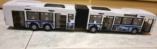 Bus City Express Dickie Toys, un modelo articulado de gran tamaño. - Diseño blanco con detalles de ciudad. - Ventanas tintadas. - Ruedas negras. - porta con complete