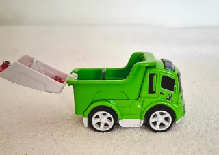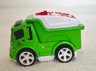 Camioncino giocattolo da cantiere, ideale per i più piccoli. - Colore verde brillante. - Dettagli in bianco e rosso sul cassone. - Ruote nere con cerchioni bianchi.
