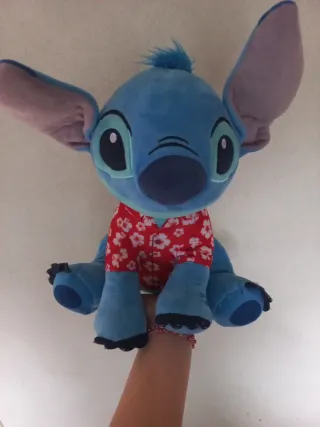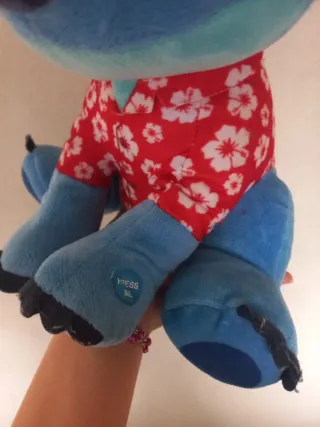 Morbido peluche del personaggio Stitch di Disney, con la sua iconica camicia hawaiana. - Colore blu vivace. - Dettagli ricamati sul viso. - Camicia rossa con fiori bianchi.
