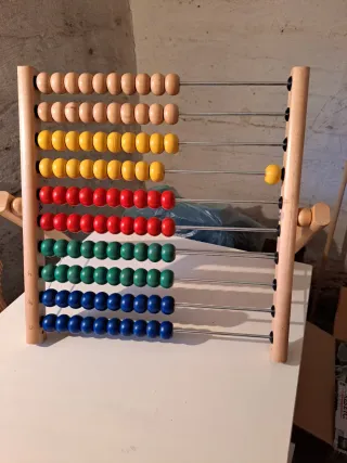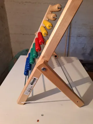 Abaco in legno con perline colorate, ideale per imparare i numeri. - Struttura in legno naturale. - Perline in colori assortiti: beige, giallo, rosso, verde e blu. - Design IKEA. pallottoliere IKEA UNDERHÅLLA. È realizzato in legno e metallo. Ogni gruppo di 10 palline ha un colore diverso per facilitare l'apprendimento del conteggio. Favorisce lo sviluppo della coordinazione e del pensiero logico.