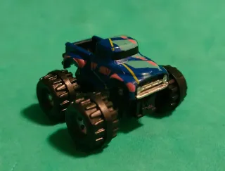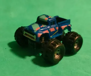 Veicolo giocattolo Micro Machines vintage, un Bigfoot Monster Truck prodotto da Galoob. Il camioncino è di colore blu con decorazioni colorate. - Camioncino Bigfoot Monster Truck - Marca: Micro Machines Galoob - Colore: Blu con decorazioni