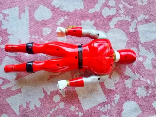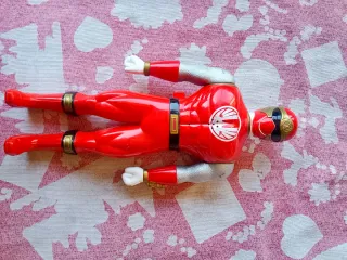 Action figure di un Power Ranger rosso. La figura presenta dettagli iconici del personaggio. - Dettagli in argento sulle braccia e gambe. - Simbolo sul petto. - Casco rosso con visiera nera e dettagli dorati.