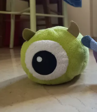 Peluche tsum tsum disney morbidi, raffigurante Mike Wazowski, corno un po' staccato. - Peluche di Mike Wazowski verde con un occhio.