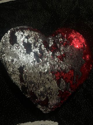 Morbido peluche a forma di cuore con paillettes reversibili. Un lato è rosso brillante, l'altro argentato, per cambiare look con un semplice gesto. - Forma a cuore. - Paillettes bicolore (rosso/argento). - Materiale morbido al tatto.