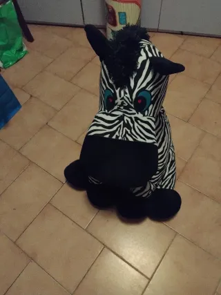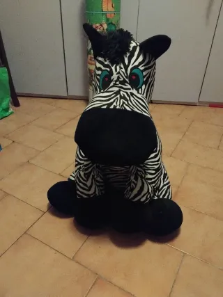 Peluche gigante a tema zebra, lungo circa 1 metro. Perfetto per decorare una stanza o come compagno di giochi. - Design a strisce bianche e nere. - Occhi grandi e espressivi.