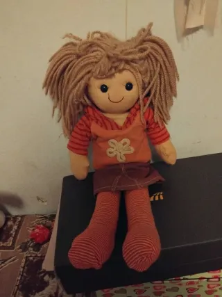 Bambola di pezza con capelli ricci