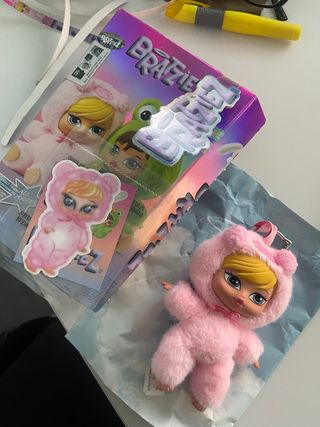 Portachiavi Bratz Bratziez con personaggio Jade vestito da gatto nero. - Dettagli con orecchie da gatto e fiocco rosa. - Materiale morbido e peloso. - Anello portachiavi in metallo.