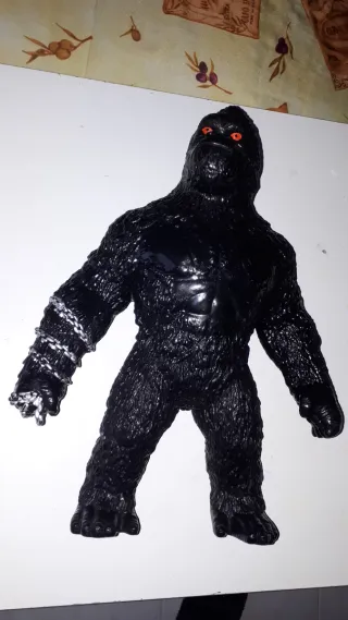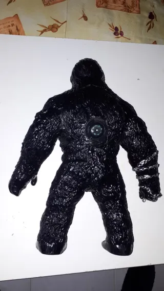 Action figure di un gorilla nero, ideale per collezionisti o come gioco per bambini. Altezza cm 36. Suona facendo il verso del gorilla arrabbiato. - Dettagli realistici della pelliccia. - Occhi rossi. - Catene argentate avvolte sul braccio sinistro.