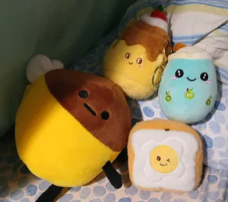 Set di 4 peluche morbidi e adorabili in stile kawaii. - Peluche a forma di ape. - Peluche a forma di budino con ciliegina. - Peluche a forma di fetta di pane con uovo. - Peluche a forma di bicchiere di bubble tea. Consegna: In busta del supermercato o senza. Decidi tu. Ritiro: Rotonda P.le Santorre di Santarosa, Fermata Milano Certosa FS o Iper la Grande - Milano Portello. Fermata Lotto fieramilanocity M1/M5 (+1€). Orari: Lun-Ven 14-17; Sab-Dom 9-17. Rispondo solitamente entro 24h, ma se sono impegnato, tra 2-3 giorni. Se riesco, però, in meno di 24h!