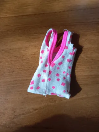 Top per Barbie degli anni '90 con una fantasia a quadretti rosa su sfondo bianco. Il bordo è rifinito in rosa. - Fantasia a quadretti rosa. - Bordo rosa.