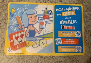 Gioco in cartone Kinder con tema sveglia. - Design a pixel art. - Include Crea la tua pixel art e Messaggi del buongiorno.