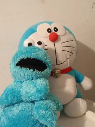 Set di due pupazzi. Doraemon dovrebbe essere di circa 50cm (non posso misurarlo al momento ma è abbastanza grande) Vendibili anche separatamente Doraemon: 28€ Cookie Monster 8€ (prendendoli insieme è come se aveste Cookie Monster in regalo) Solo cookie Monster ha piccoli segni di usura negli occhi