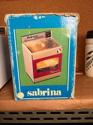 Lavastoviglie giocattolo Sabrina con design retrò. La scatola presenta un'immagine colorata dell'elettrodomestico. - Scatola originale inclusa. - Design a forma di lavastoviglie. - Colori vivaci sul packaging.