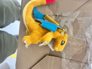 Pupazzo di peluche ispirato al personaggio di Charizard della serie Pokemon. Realizzato in morbido tessuto giallo, presenta dettagli come le ali blu e la punta della coda rossa. - Materiale: Peluche - Colore: Giallo, blu, rosso - Personaggio: Charizard - Serie: Pokemon