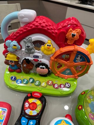 Lotto di giochi Chicco per bambini, perfetti per stimolare la creatività e l'apprendimento. - Fattoria interattiva con animali e numeri. - Due telefoni giocattolo. - Gioco con fungo e animali. - Colori vivaci e design accattivante.