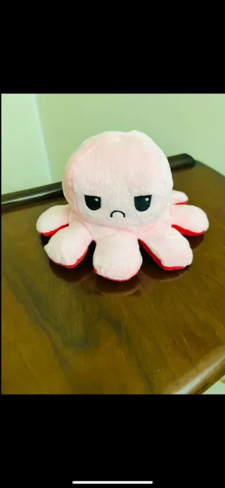Simpatico peluche a forma di polpo, reversibile con due espressioni. - Colore rosso e rosa - Faccina felice da un lato e triste dall'altro.