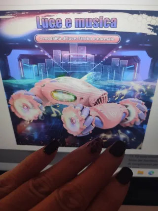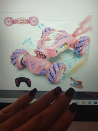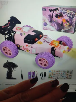 Macchina telecomandata per bambini, ideale per il divertimento. - Colore rosa con dettagli viola. - Design moderno e accattivante. - Ruote speciali per movimenti acrobatici. - auto 4 x4 con mano e Luce spray LED 360 rotazione RC stunt .