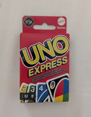 Gioco di carte UNO Express di Mattel Games. Versione rapida del classico gioco. NUOVO e MAI usato. UNO Express card game by Mattel Games. Fast-paced version of the classic game. NEW and NEVER used.