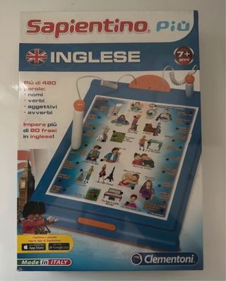 Gioco Sapientino Più per imparare l'inglese, ideale per bambini dai 7 anni in su. Contiene più di 480 parole e 80 frasi. - Include più di 480 parole tra nomi, verbi, aggettivi e avverbi. - Permette di imparare più di 80 frasi in inglese. - Età consigliata: 7+ anni. - Made in Italy.