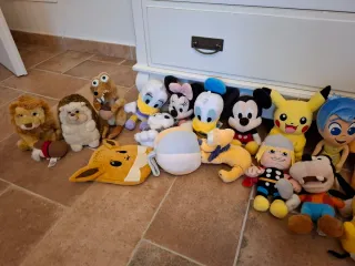 Lotto di peluche di vari personaggi famosi, perfetti per collezionisti o per un regalo. - Peluche di Topolino - Peluche di Paperino - Peluche di Minnie - Peluche di Winnie the Pooh - Peluche di Tigro - Peluche di Pikachu - Peluche di Pluto - Peluche di Joy (Inside Out) - Peluche di Thor - Peluche di Daisy - Peluche di un personaggio giallo non identificato - Peluche di un personaggio bianco e blu non identificato - Peluche di un personaggio giallo con collare blu Prezzi da 2 a 5€. Per informazioni scrivetemi