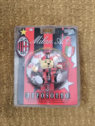 Orsetto Tifosotto del Milan AC, un simpatico compagno per i tifosi. - Orsetto con maglia e cappellino del Milan. - Include pallone, fischietto e trombetta da stadio. - Età consigliata: +3 anni.