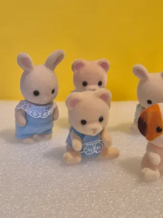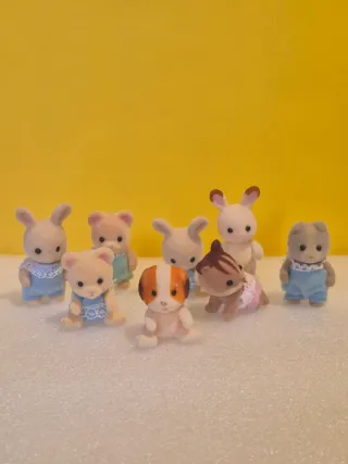 Set di 8 adorabili animaletti Sylvanian Families, perfetti per arricchire la tua collezione o iniziare una nuova avventura. Alcuni sono nuovi altri un po piu usati guarda bene le foto. Possibilità di vendita separata a 4 euro al pezzo - Include 8 personaggi. - Animaletti in morbido peluche. - Vestiti dettagliati.