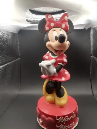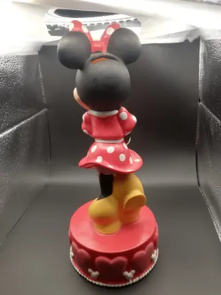 Salvadanaio a forma di Minnie Mouse, personaggio iconico Disney. Perfetto per conservare i risparmi. Altezza 28 cm - Design con Minnie Mouse in abito a pois rossi. - Base rossa decorata con cuori e scritta Minnie Mouse.
