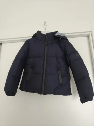 Vendo caldo giubbotto per bambini taglia 5 anni, blu scuro, imbottito, pesante invernale con cappuccio estraibile dal colletto, nuovo mai indossato, compresi i bottoni di riserva in bustina in dotazione, zip laterali e zip frontale perfettamente funzionanti, firmato armata di mare, impermeabile, etichetta con composizione e lavaggi in foto.