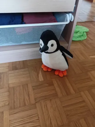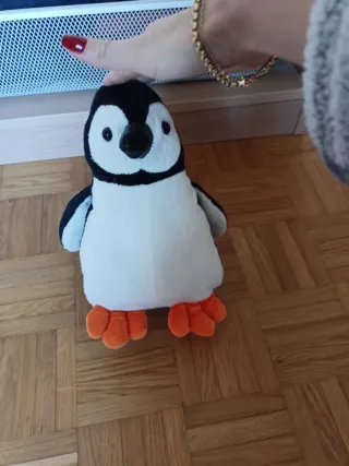 Morbido peluche a forma di pinguino, perfetto per arredare una cameretta o come compagno di giochi. - Colore nero e bianco. - Dettagli arancioni su zampe e becco.