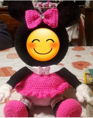 Delizioso portafoto a forma di Minnie, realizzato interamente all'uncinetto. - Perfetto come idea regalo per le più piccole. - Dettagli curati con fiocco e fiorellino. - Colori vivaci e allegri. Verrà creato nuovo e personalizzato in base alla scelta personale dei colori.