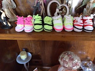 Deliziose scarpine per neonati realizzate a mano all'uncinetto. Perfette per un regalo speciale o per completare un corredino. - Morbido filato. - Design unico e colorato. - Realizzate con cura artigianale. Amigurumi Scarpine bimbi tipo Sneakers fatte a mano all'uncinetto. Create con marchi di vario genere : Nike, Adidas, Converse, etc. Verranno create nuove e personalizzate in base alla scelta personale dei colori e del marchio. Il prezzo puo' variare in base ad alcuni criteri. Da 15 a 25 euro circa alla coppia.