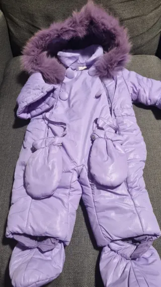 Tuta invernale per neonata, taglia 3 mesi. Perfetta per proteggere dal freddo. - Colore lilla. - Cappuccio con pelliccia sintetica. - Include muffole e piedini. - Chiusura con bottoni. Tuta invernale bambina 3 mesi con guanti moffole, scarpine imbottite e cappuccio con pelo. Allacciatura centrale con doppia fila di bottoni a pressione per indossarlo facilmente. Marca Bebebo'. Lunghezza cm 52. Sconti sui set: 20% 2 articoli, 25% 3 articoli, 30% 5 articoli e paghi solo una spedizione.