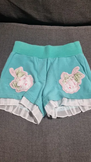 Bermuda in felpa firmata Monnalisa, perfetti per un look casual e comodo. - Colore azzurro - Applicazioni floreali frontali - Dettaglio con balza in tulle sul fondo Bermuda bambina felpato con tasche frontali e decori con fiori. Larghezza vita cm 25, elasticizzata, altezza cm 24. Sconti sui set: 20% 2 articoli, 25% 3 articoli, 30% 5 articoli e paghi solo una spedizione.