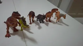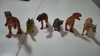 Set di sei giocattoli dinosauri per bambini. In plastica rigida, senza difetti - Dinosauri di plastica. - Include un cavallo.