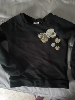 Maglia grigia Blukids con dettagli a forma di cuore e fiocco realizzati con paillettes reversibili. - Maniche lunghe. - Girocollo. - Tessuto morbido.