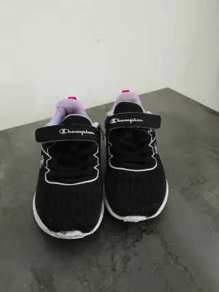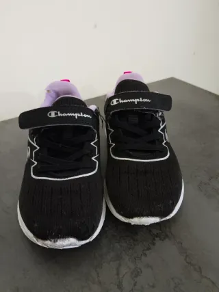 Scarpe da ginnastica per bambina marca Champion. - Colore nero - Chiusura con velcro - Dettagli bianchi e fucsia - Interno viola