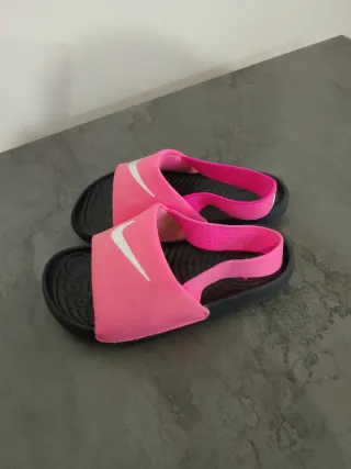 Sandali estivi Nike per bambina. - Colore rosa vivace. - Logo Nike bianco. - Fascia elastica posteriore per una calzata sicura.