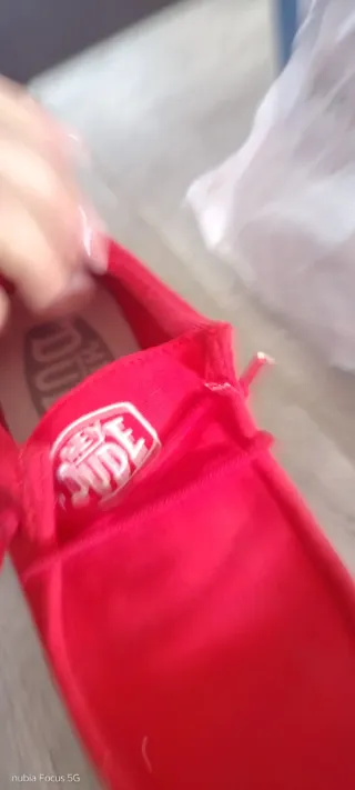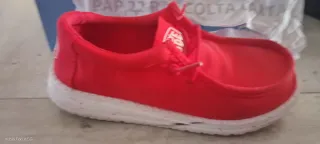 Mocassini rossi da bambino, perfetti per un look casual ma curato. - Tomaia in tessuto rosso. - Suola bianca con dettagli a pois rossi. - Lacci rossi. - Logo sul tallone.