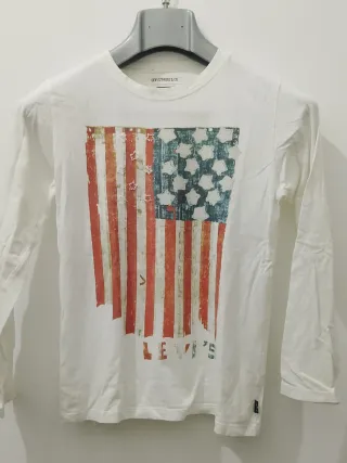 Maglia a maniche lunghe da bambino Levi's con una stampa della bandiera americana. - Stampa effetto vintage della bandiera USA. - Logo Levi's stampato sul fondo. - Girocollo e maniche lunghe.