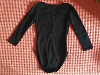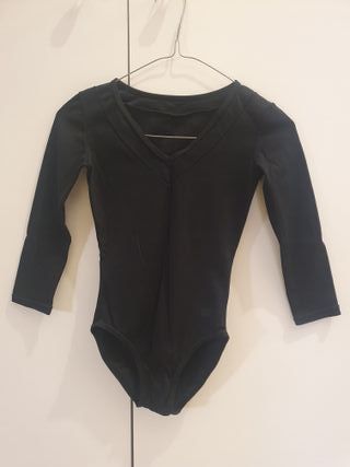 Body nero per bimba da ginnastica, non c'è la taglia ma le misure sono le seguenti: spalle 32 cm lunghezza 58 cm manica 39 cm. In buone condizioni.