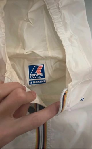 Giacca K-Way per neonato, perfetta per le giornate più fresche. - Colore bianco - Logo K-Way sul petto - Zip frontale con dettagli colorati - Cappuccio - Tasche laterali