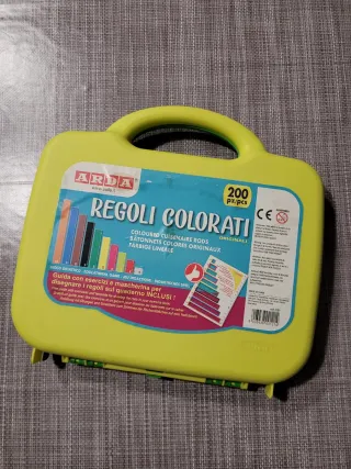 Set di 200 bastoncini colorati Arda per attività didattiche. solo valigetta e regoli in ottime condizioni. - NON Include guida con esercizi e mascherina. - Colori assortiti.