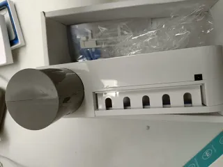 Dispositivo Meco per l'igiene orale, combina un sterilizzatore UV per spazzolini con un dispenser automatico di dentifricio. - Tasso di sterilizzazione UV: 99.9% - Porta spazzolini separato per 5 spazzolini - Dispenser automatico di dentifricio: senza disordine e senza sprechi - Raggio ultravioletto - Uso a lungo termine - Sicuro - Ecologico