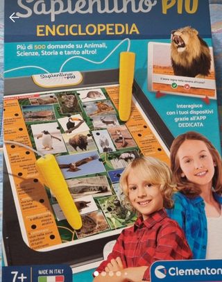 Gioco educativo Sapientino Più Enciclopedia Clementoni, in ottime condizioni. Include 2 pennarelli elettronici e 2 tabelloni con domande su animali, scienza, storia e tanto altro! Ideale per bambini dai 7 anni in su. - Perfetto per imparare giocando. - Include app dedicata. - Made in Italy.